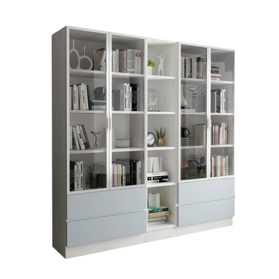 铝合金边框与钢化玻璃面板,精致美观且坚牢结实的同时可清晰看见书架内书籍。模块化设计,不挑户型,满足各种大小户型随心搭配。