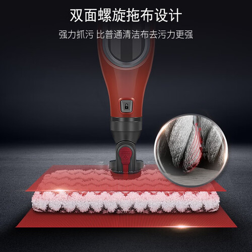 采用人体工学手柄设计,搭配180°自由旋转拖把头,清洁方式更灵活。双面螺旋拖布,抓污能力更强,告别频繁清洗拖布。