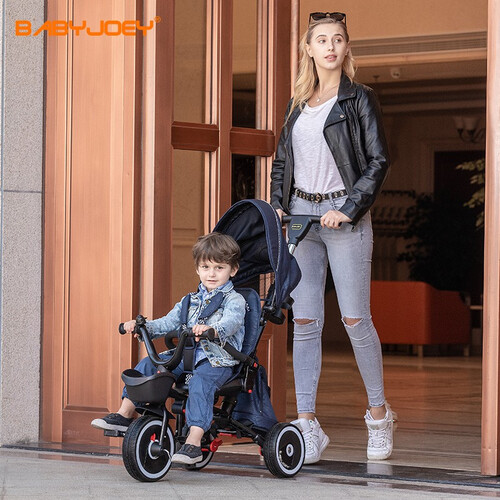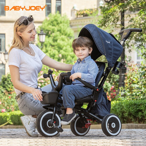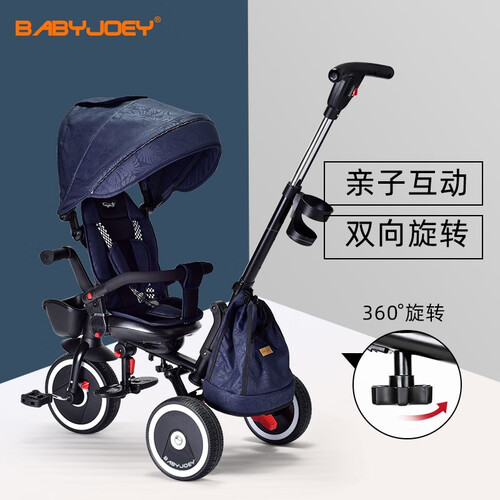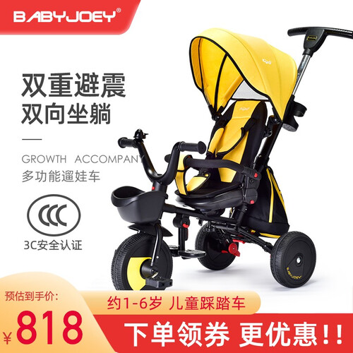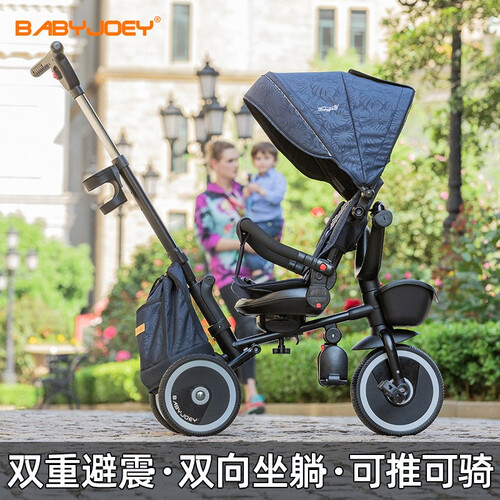 三轮车的轮胎采用6cm加宽设计,轻盈有弹性,耐磨性好,可有效减少震感;推行、推骑、滑骑和骑行四种模式可转换,相当实用。