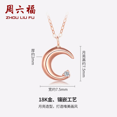 周六福 月亮吊坠K金项链