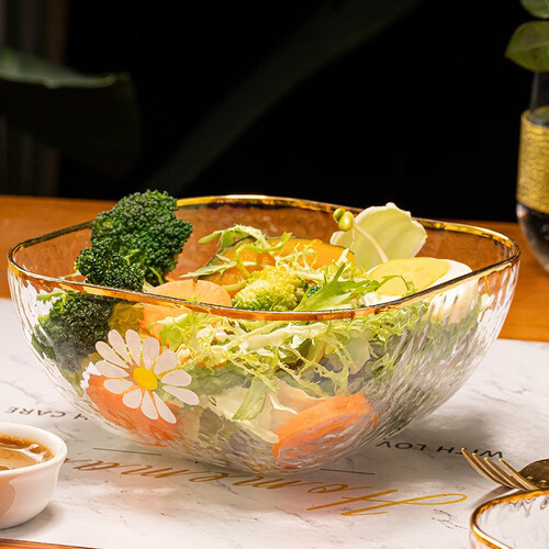 摩登主妇金边锤纹爱心玻璃沙拉碗