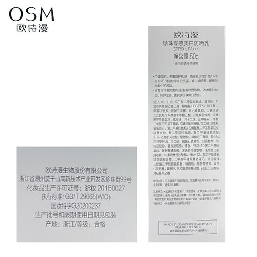 欧诗漫 珍珠零感美白防晒乳