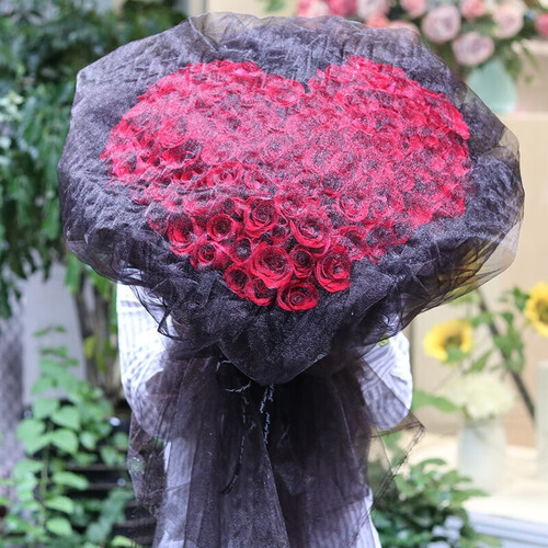 九十九枝红玫瑰的选择,寓意着您深沉又热烈的爱。心形造型设计符合情意的表达,创意十足的同时,吸睛度也倍增。