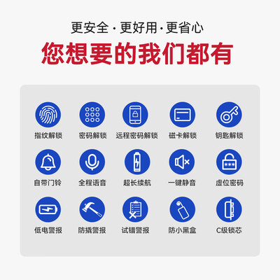 采用虚位密码设计,防止偷窥,守护您和家人的安全。甄选有机玻璃的面板和锌合金的锁身设计,耐用性更好,易清洁更贴心。