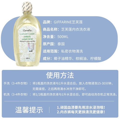 这款为内衣洗衣液,添加椰子油成分,有效去除顽固污渍,让你展现洁净状态,守护穿衣健康。