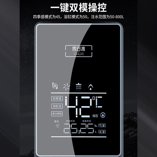 零冷水具有四种模式,点动循环、单次循环、自定义预约和手机APP,操作更加简洁;四季感模式为45,浴缸模式为50。