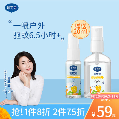 严选原料,安心使用;不添加避蚊胺,更适合娇嫩肌肤;轻轻一喷,有效驱蚊长达6.5h;细腻喷雾,清爽不粘腻。