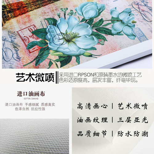 甄选进口油画布,纹理清晰,质感良好,耐磨抗拉扯,防止褪色。隐藏式挂钩设计,轻松挂放,美观大方。