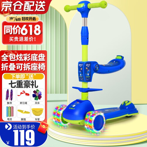 座椅可以一键进行旋转和折叠的操作,非常的简单,宝宝自己就可以操作。车身有七彩音乐灯,时尚又欢快,给孩子带来更愉悦的骑行。