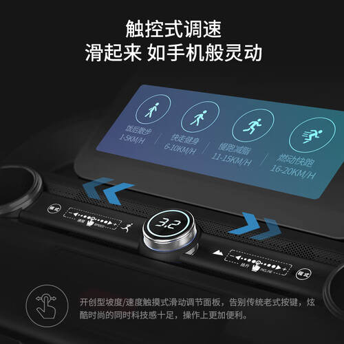 内置静音马达,动力澎湃,运行静谧无声,夜间运动时不扰民。电动坡度可调节,满足你对运动的不同需求,随意调整更加人性化。