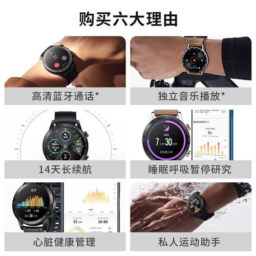 高清蓝牙通话功能,抬手即沟通,解放双手,沟通更方便。内置双芯片搭配智能节点算法,续航可达14天。续航强劲,延长使用时间。