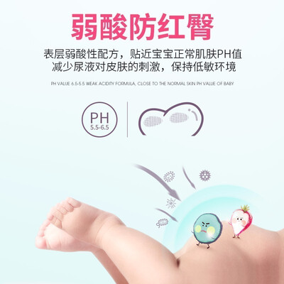 表层弱酸性配方,贴近宝宝PH值,保持低敏环境,采用3D葡萄状面层,呵护娇嫩肌肤。