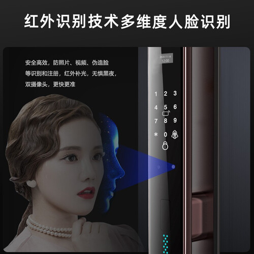 自动刷脸解锁,无需用钥匙操作,快速开门,安全便捷。虚位密码,无惧旁人在场,避免偷窥困扰,放心开锁。