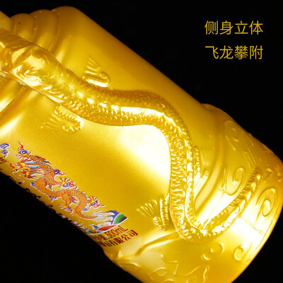 金黄的瓶帽加上双龙戏珠设计,精致美观,礼赠更大气,结合瓶身科技烫金,更显质感。入口平顺柔和,递进释放酒香,让人回味无穷。