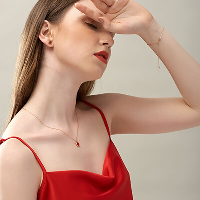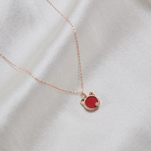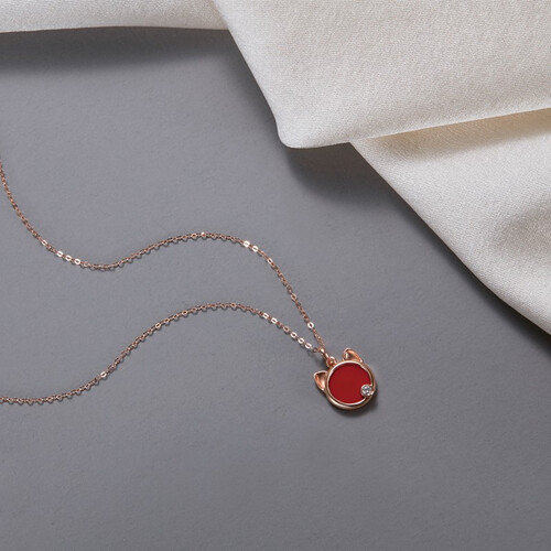 梵迪 正红猫咪镶钻项链