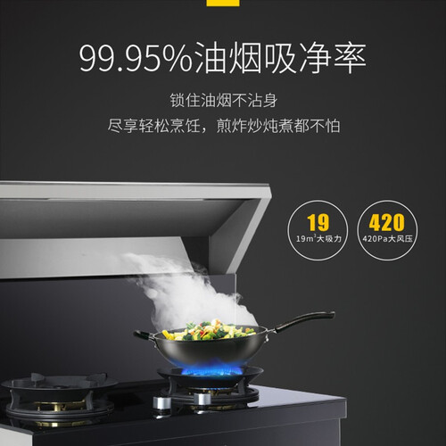 采用引擎盖式模块设计,快速开启台面,方便拆卸风轮,保养清洁。搭载900mm多功能置物台,放置调料方便取用。