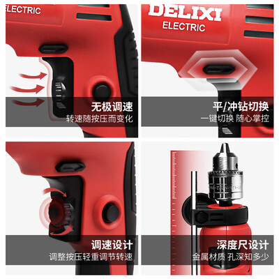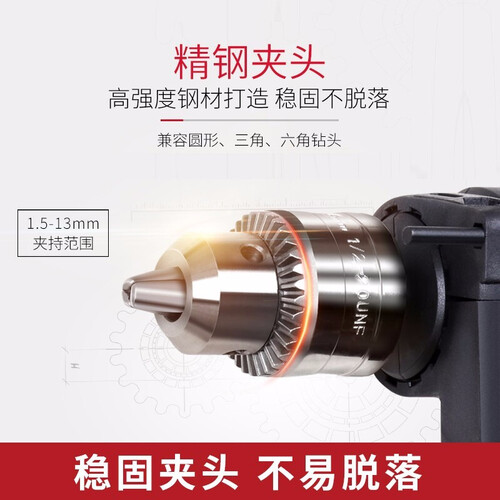 具有平钻、冲击功能,一键可切换,操作方便。结合精钢夹头使用,夹持稳固,不易脱落,使用很安全。
