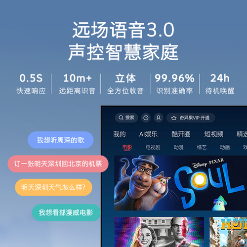智能语音控制,语音唤醒、换节目、查询资料都能搞定。光学防蓝光屏幕,没有频闪,不用担心会伤到孩子眼睛。