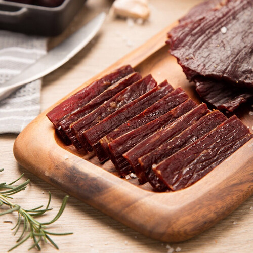 包含原味、黑胡椒味、孜然味和麻辣味四种不同口味的牛肉干,带给味蕾惊喜体验。加之新鲜牛肉,切成薄薄的牛肉片,紧实有嚼劲。