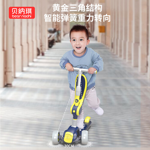 采用涂鸦设计结合闪光滑轮,趣味可爱,让孩子出行更酷炫时尚,三角结构,平衡重力转向不易侧翻,孩子玩耍安全便捷。