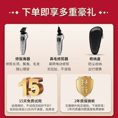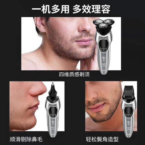 一机三用的设计,集剃须刀、鬓角器与鼻毛器于一体,轻松打造清爽英俊的面容。内置优质锂电池,具有持久续航能力。