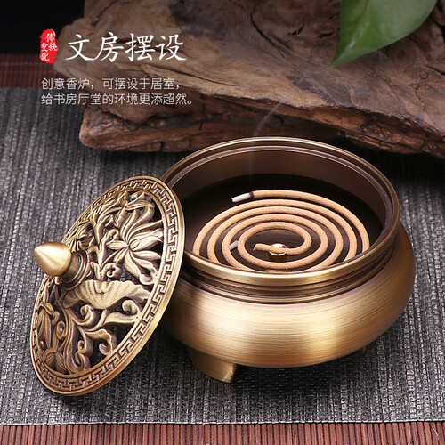 镂空图案修饰炉盖,典雅优美有质感,尽显古典韵美。纯铜材质打造,沉重大气散发着迷人的金属光泽,撩动众人眼球。