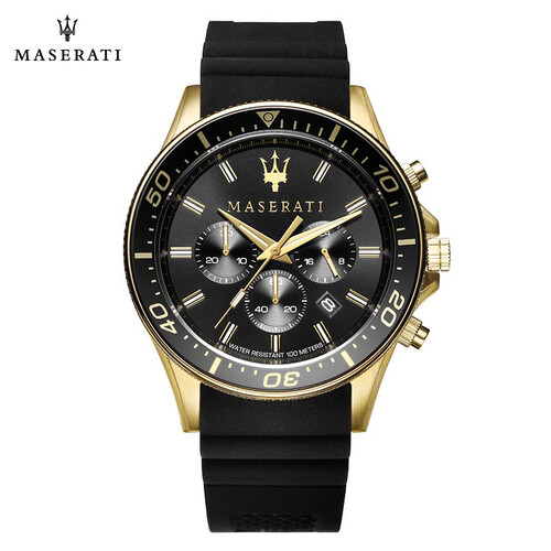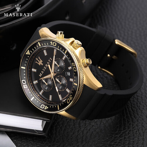 沿袭玛莎拉蒂汽车仪表盘设计,彰显不凡底蕴,典雅黑金配色,体现出众魅力。硅胶材质表带,还原玛莎细节,演绎澎湃激情。