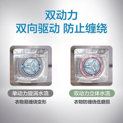 拥有专利双动力洗涤科技,破解传统洗护难题。双动力特有内同波轮双向驱动力,形成反向对冲水流,打散、舒展衣物,防止缠绕。