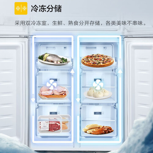 拥有零冻锁鲜仓,锁住食材水分和营养,使用时无需解冻。灵活变温功能,可随需求变化存储温度,让每种食材都找到最适存储温度。