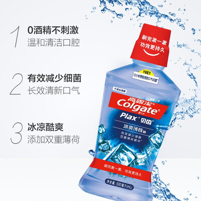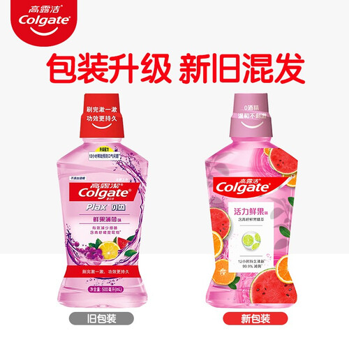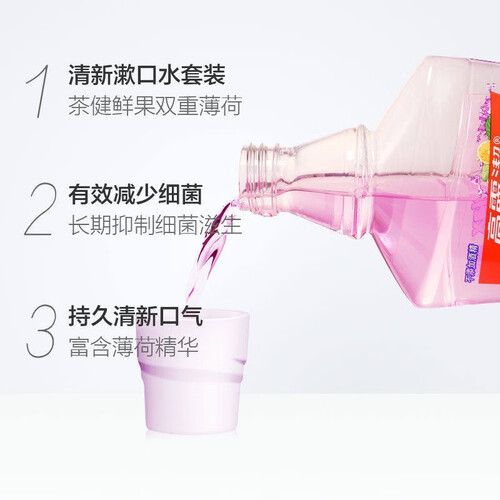 高露洁鲜果薄荷味漱口水,含天然鲜果萃取物,不添加酒精,口感柔和不刺激,能够在牙齿表面形成保护层,有效减少口腔细菌。