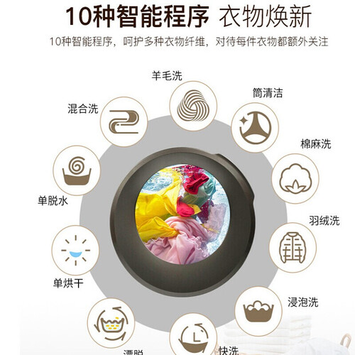 十种智能洗涤程序,一键便捷切换,满足衣物不同的洁净需要。品质蜂巢内筒,有效减少与衣物的摩擦情况,清洁更安心。