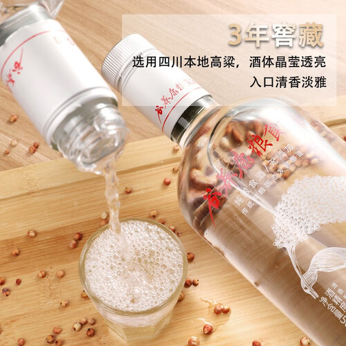 瓶身选用高温烤花图案点缀,精美大气,送礼更显品位。采用纯粮固态发酵工艺,酒体清洌晶莹,入喉净爽甘美。