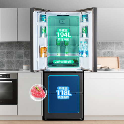 多维冷风循环,制冷快速均匀,清新干爽,食材不风干不粘连,保鲜不结霜。四门三温大容量,生熟荤素精细分储,呵护食材新鲜。