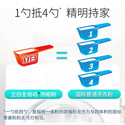 这是一款浓缩型洗衣粉,日常洗衣只要取少量即可,既能达到很好洁净效果,又更加划算耐用。
