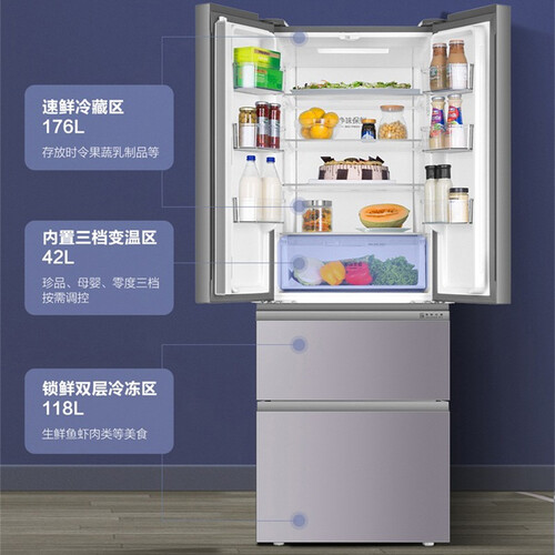 新一级能效模式,节能省电绿色环保。内置三挡变温区,按需调控,食物种类再繁杂也能各自保鲜。DEO净味系统,食物不容易串味。