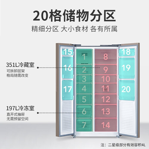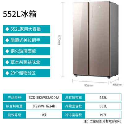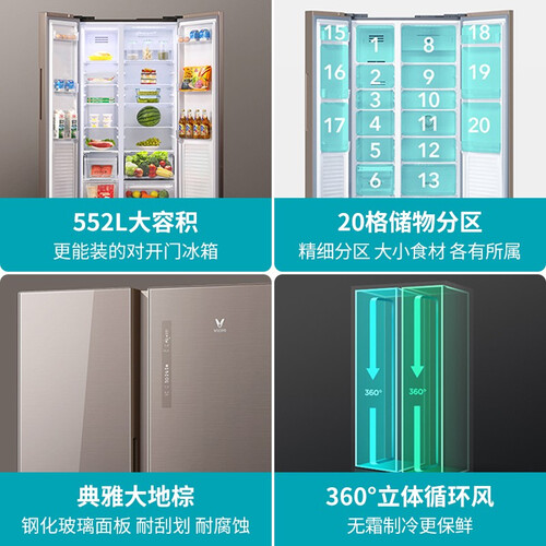 拥有552L大容量的空间设计,可以满足一周的食材装纳需求。结合风冷无霜设计,避免手动除霜的繁琐性。