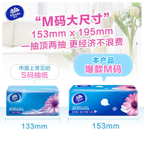 维达 超韧3层可湿水抽纸