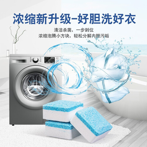 适合清洁洗衣机内缸的泡腾片,可去除异味、细菌及污垢。适用于多种洗衣机。同时含有生物酵素,还可抑制细菌滋生。