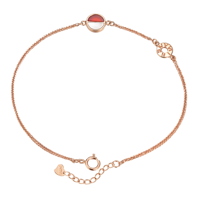 白母贝与红玛瑙巧妙结合,流光溢彩,尽显现代女性的独立自信。搭配罗马字母设计,给人眼前一亮的感觉。