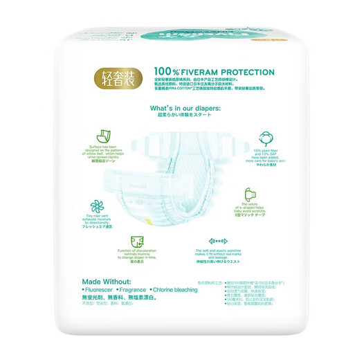 纸尿裤采用撞色的设计,大胆的色彩运用,深受孩子的喜欢。无添加可迁移性荧光增白剂,呵护宝宝健康茁壮成长。