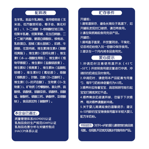 纯正羊奶配方,更少致敏蛋白,贴心呵护敏感体质的宝贝。科学配比OPO、EGF等多重营养,满足宝贝成长所需,发育更迅速。