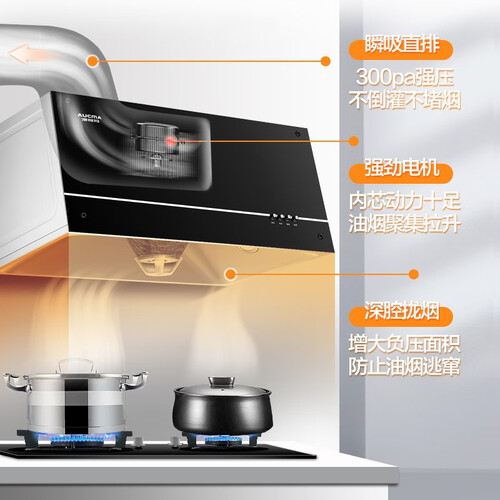 内置高密度过滤网,更快速分离油烟,用户清理省心。加深的500mm拢烟腔,油烟一网打尽,有效避免逃窜情况。