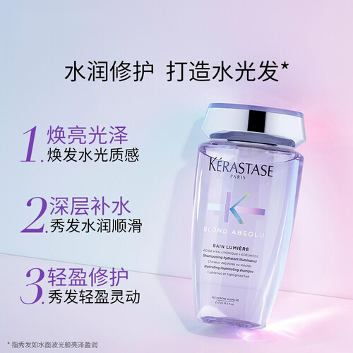 焕亮光泽,修护外层毛鳞片,提亮秀发光泽度,顺滑发丝,带来从发根到发尾的水润触感。