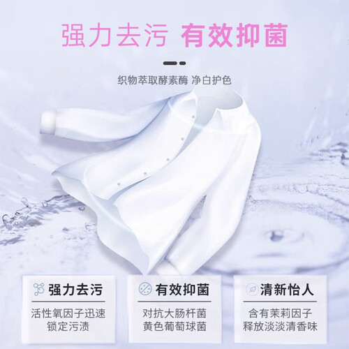 除了可以保护衣物纤维以外,添加了植物酵素酶的洗衣粉,还具有良好护色效用,可以牢锁原本的色泽,久洗织物依然亮泽如新。