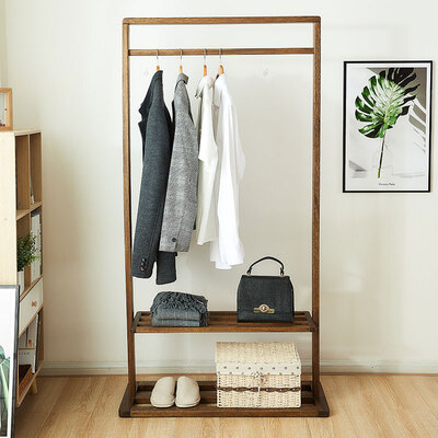 全实木框架,稳固结实,耐腐防潮,品质有保障。配合双层设计,可置物、可挂衣,提升实用性。