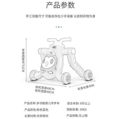 采用稳定力学结构,推行稳当,助力宝宝平稳学步。加快轴距设计,让孩子安心迈开大步子,舒适不挡腿。