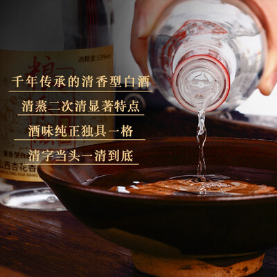 来自山西杏花村镇,精选大麦,豌豆,高粱酿造,纯粮食无添加,让您饮酒更安心。加以山西非遗剪纸文化贴花,复古感强,值得品鉴。