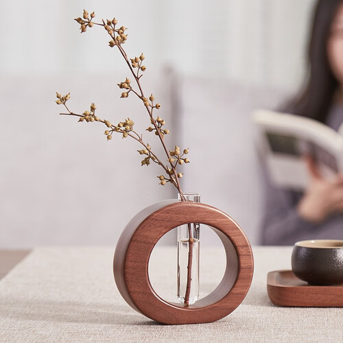 花瓶设计模仿了大自然树洞,瓶身可视化剩余水量,养花添水更方便。坚持最后一道工序手工打磨,消除木头表面纤维孔,更具光泽。