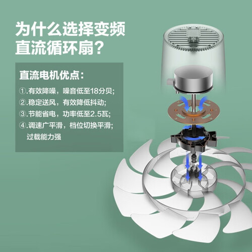 18翼双环扇叶,犹如自然风,细腻柔和,风感舒适。直流变频电机,节能省电,低音运行,适合宝宝家庭。