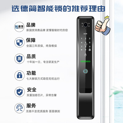 广角摄像头,全面监控门前动态,带来清晰的视野。智能IC卡有加密设计,不怕别人去复制,门卡丢失时,在门锁上注销即可。